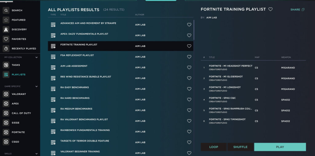 Aimlabs Fortnite Training Playlist